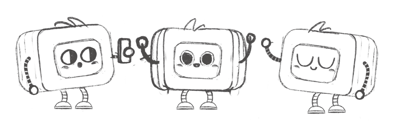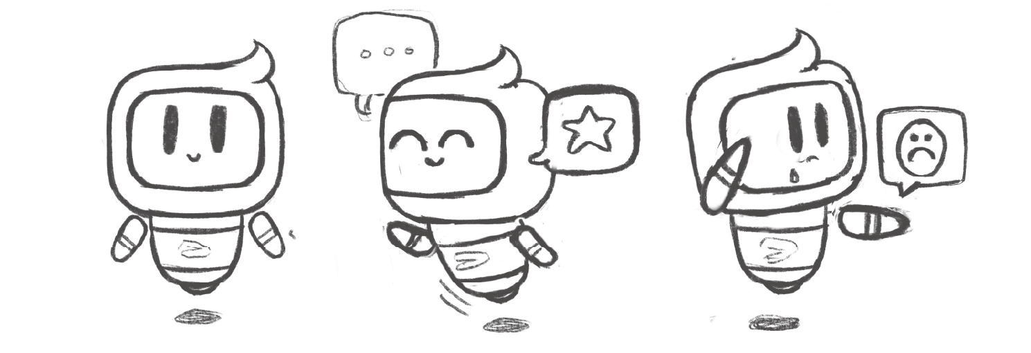 'Digi', the Customer Service mascot - initial sketches to finished character design