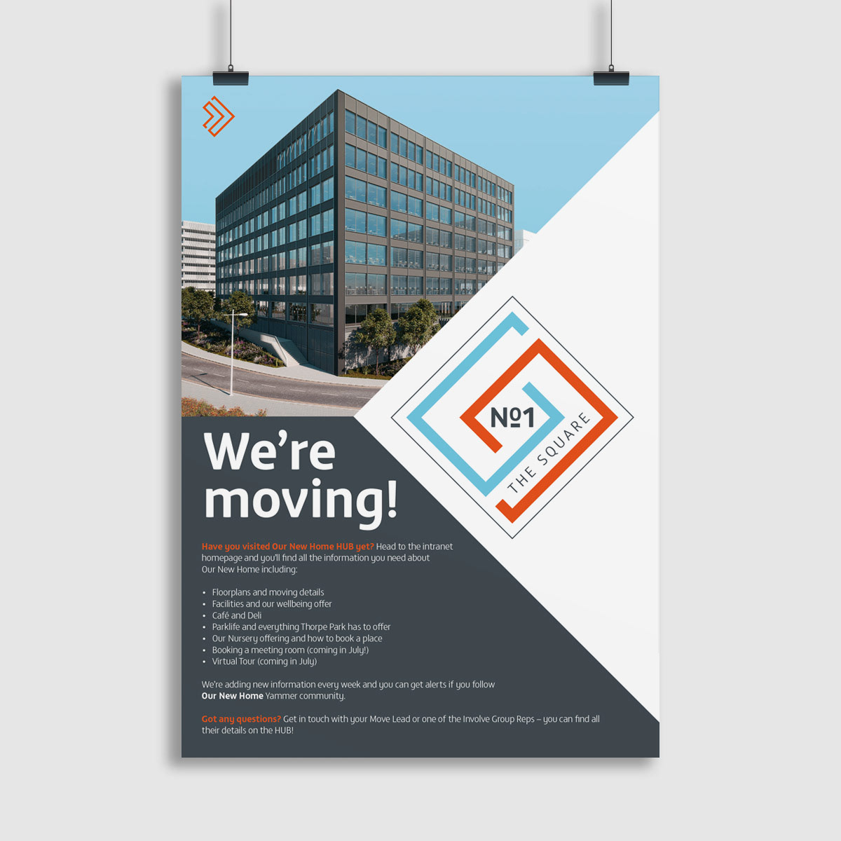 Poster to communicate the move to employees featuring new branding